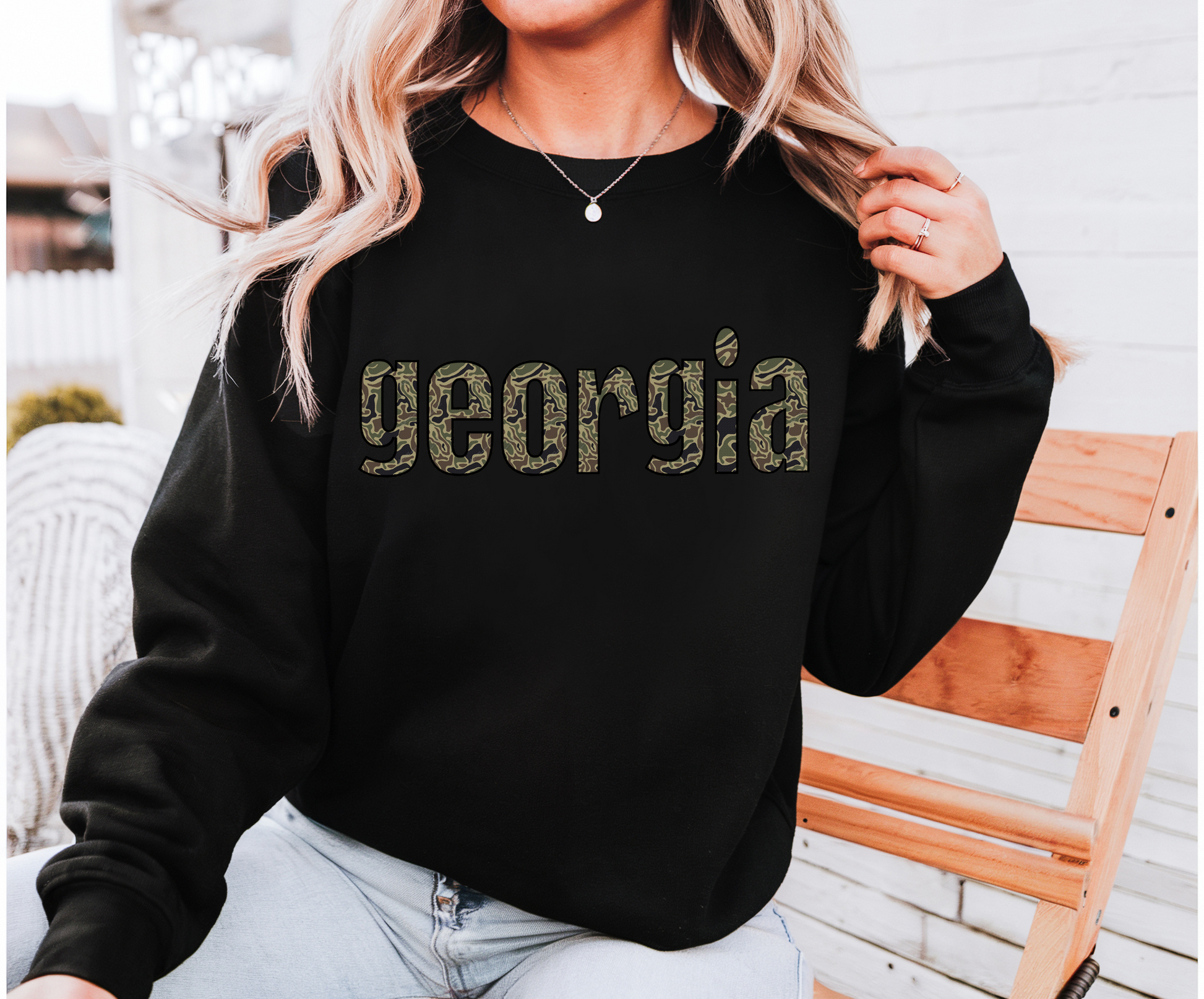Show off your state pride in style! These tees and sweatshirts feature Alabama, Tennessee, or Georgia in bold camo print—perfect for game days, casual outings, or just repping your home state with a touch of attitude. Soft, comfy, and designed for everyday wear, this piece will quickly become a favorite.